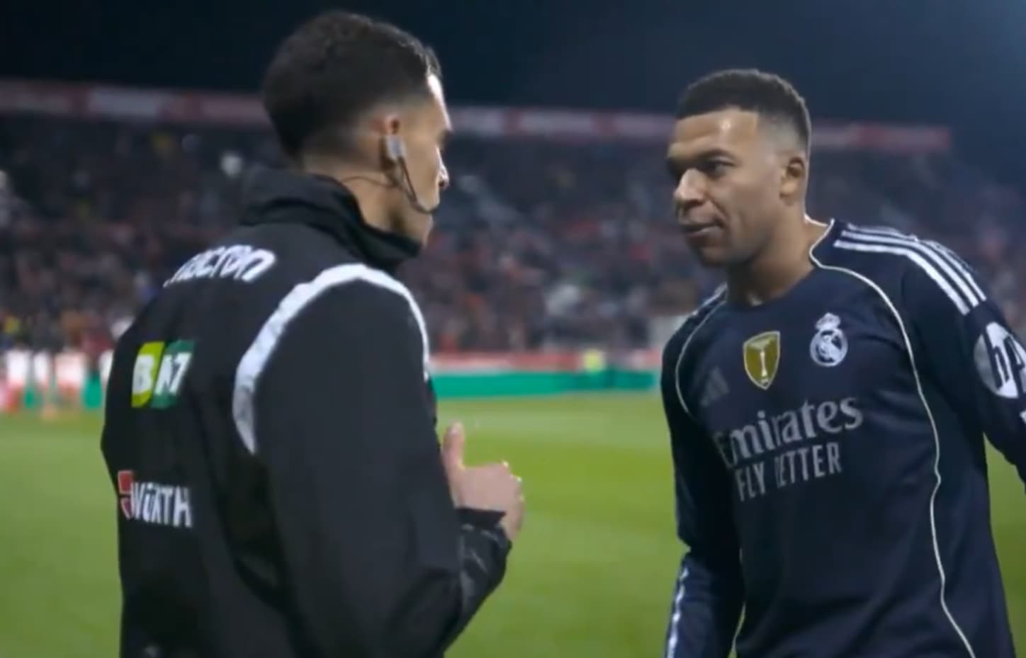 Interpelé, Alejandro Clemente n'a le temps que de lui rétorquer un "Écoute-moi" avant que Kylian Mbappé n'ajoute: "Pourquoi tu regardes dans cette direction?" "D'accord, mais...", bredouille ensuite l'arbitre à qui la star madrilène scande une dernière fois: "Regarde-moi quand je te parle." Il s'écarte ensuite.